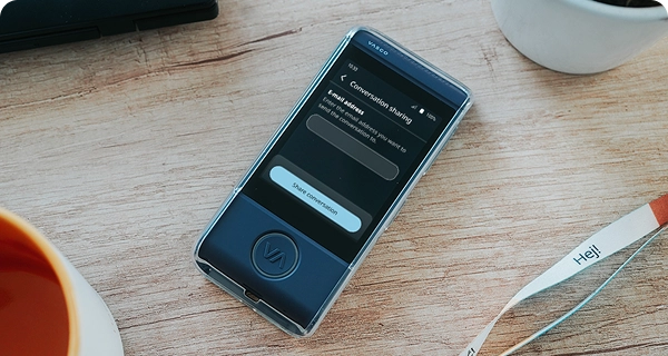 Z Vasco nie umknie Ci żaden szczegół. Zawsze możesz wrócić do zapisu przetłumaczonych rozmów lub udostępnić je – np. przesyłając na maila.