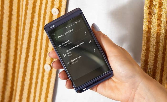 Dla tych, którzy lubią mieć wybór. Oprócz rewolucyjnej funkcji Vasco My Voice, możesz również wybrać klasyczny męski lub żeński głos odtwarzania tłumaczeń. To pozwala dopasować brzmienie do sytuacji. Wolisz oficjalny ton na spotkaniu biznesowym, czy bardziej ciepły podczas rozmowy z rodziną? Twój tłumacz, Twoje zasady.